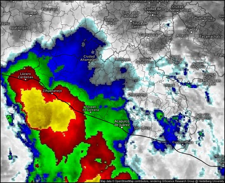 De igual modo, se informó que se mantiene en vigilancia a una Zona de Baja Presión que presenta 90% de probabilidad para desarrollo ciclónico en 7 días y 30% a 48 horas, mismo que se ubica esta mañana a 900 Kilómetros al sur de Oaxaca y ante la eventual posibilidad de que avance muy cerca y paralela a las costas nacionales provocando lluvias muy fuertes a intensas en Guerrero durante el fin de semana.