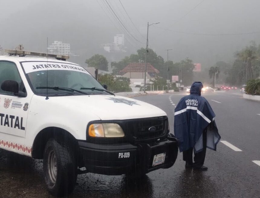 Ante la presencia de lluvias durante la tarde de este jueves, oficiales de Tránsito Estatal permanecen instalados en la avenida Escénica para atender cualquier emergencia.