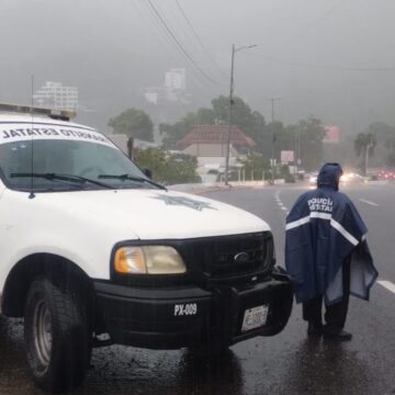 Mientras tanto, en la carretera Atoyac – Heliodoro Castillo, elementos de la Policía Estatal realizan patrullajes y labores de retiro de árboles caídos para restablecer la circulación. Las acciones de monitoreo y apoyo continúan en distintos puntos del estado, con recorridos permanentes para atender cualquier emergencia.