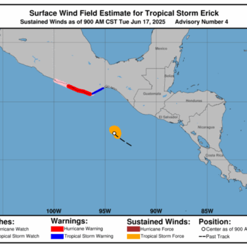 Según el CNH, la tormenta Erick producirá lluvias fuertes a través de porciones en Centroamérica y el sur de México el resto de la semana,