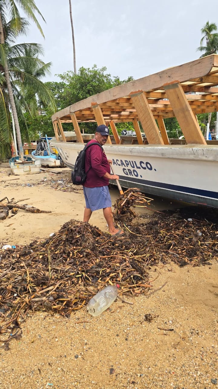 La Promotora y Administradora de los Servicios de Playa de Acapulco continúa por quinto día consecutivo con los trabajos de limpieza y retiro del lirio acuático en diferentes puntos de la bahía de Acapulco.