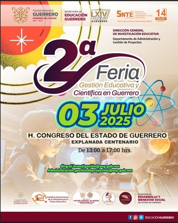 Convencidos de que la educación debe seguir siendo un tema prioritario de análisis, reflexión y acción, diputadas y diputados del Congreso del Estado de Guerrero, a través de la Comisión de Educación, Ciencia y Tecnología, invitan a participar en la 2ª Feria de la Gestión Educativa y Científica en Guerrero.