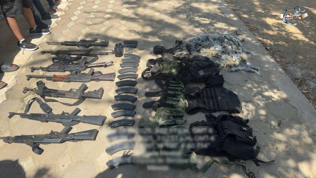 Les fueron asegurados siete fusiles, 16 cargadores, un magazín (para almacenamiento de municiones), un chaleco táctico con placas, tres chalecos adicionales sin placas, tres pecheras tácticas, 188 dosis de mariguana y cuatro motocicletas.