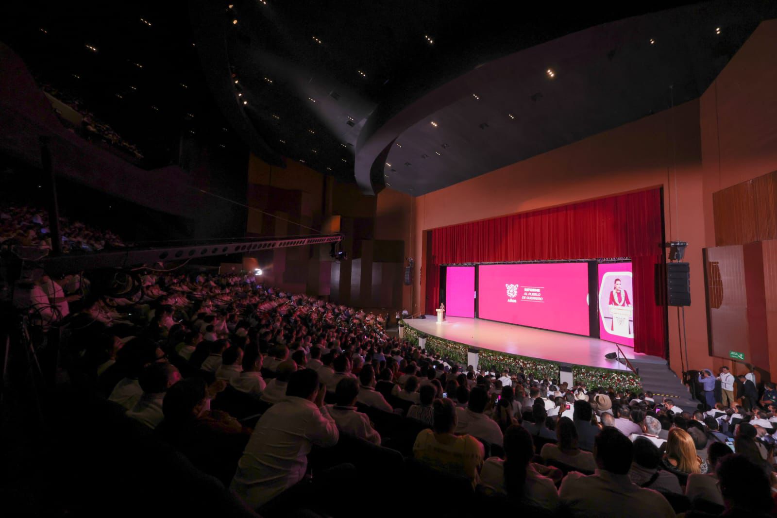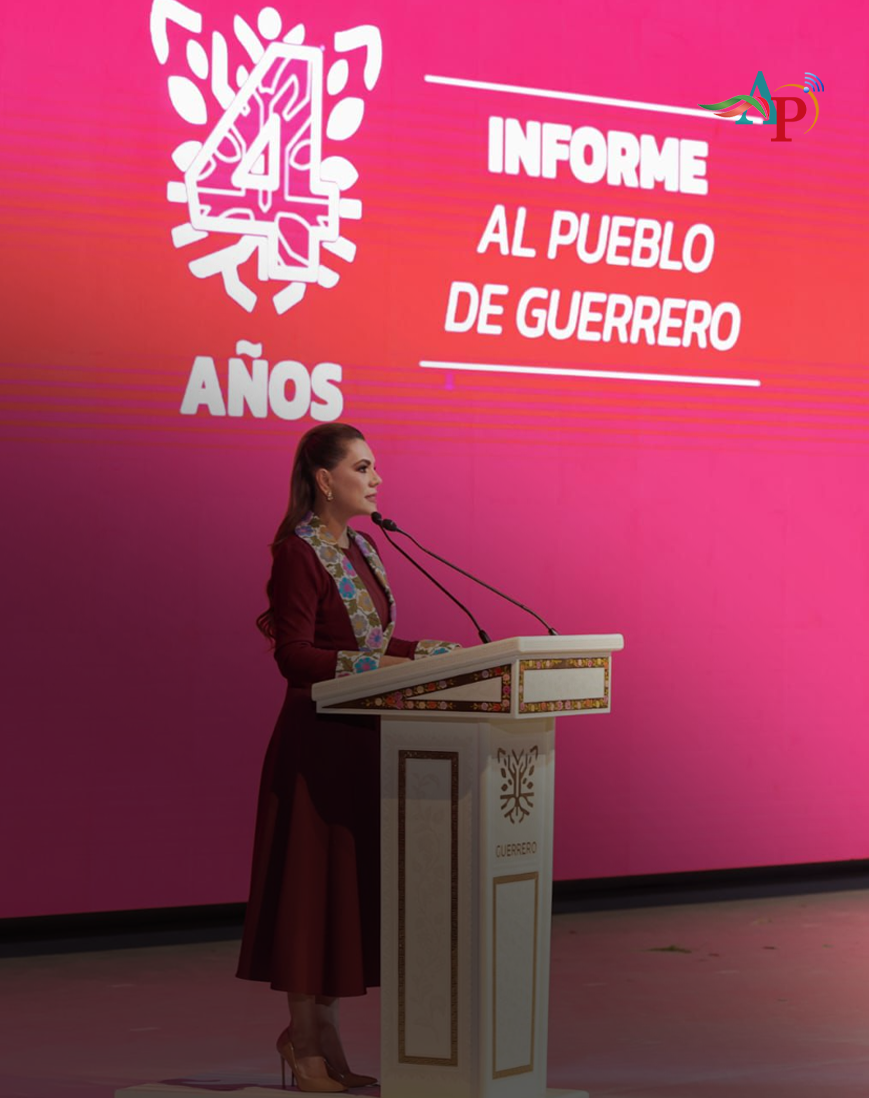 En el Auditorio “Sentimientos de la Nación”, en este acto histórico, la primera gobernadora de Guerrero subrayó los resultados en los cinco ejes de su administración: Infraestructura para el bienestar; bienestar, igualdad y derechos sociales; transformación turística y desarrollo económico; administración y buen gobierno y la estrategia “Transformando Guerrero que han dado resultados tangibles.