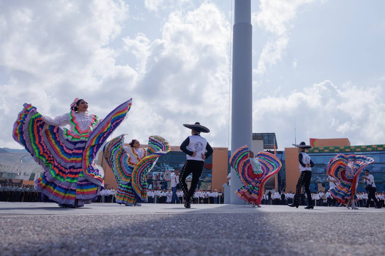 Durante el acto se rindieron honores a los lábaros patrios y se contó con la participación del Ballet Folclórico Danza en el Viento, que presentó la pieza “El Jarabe Tapatío”, acompañado por el Mariachi Perla Negra, en un ambiente de identidad y orgullo nacional.