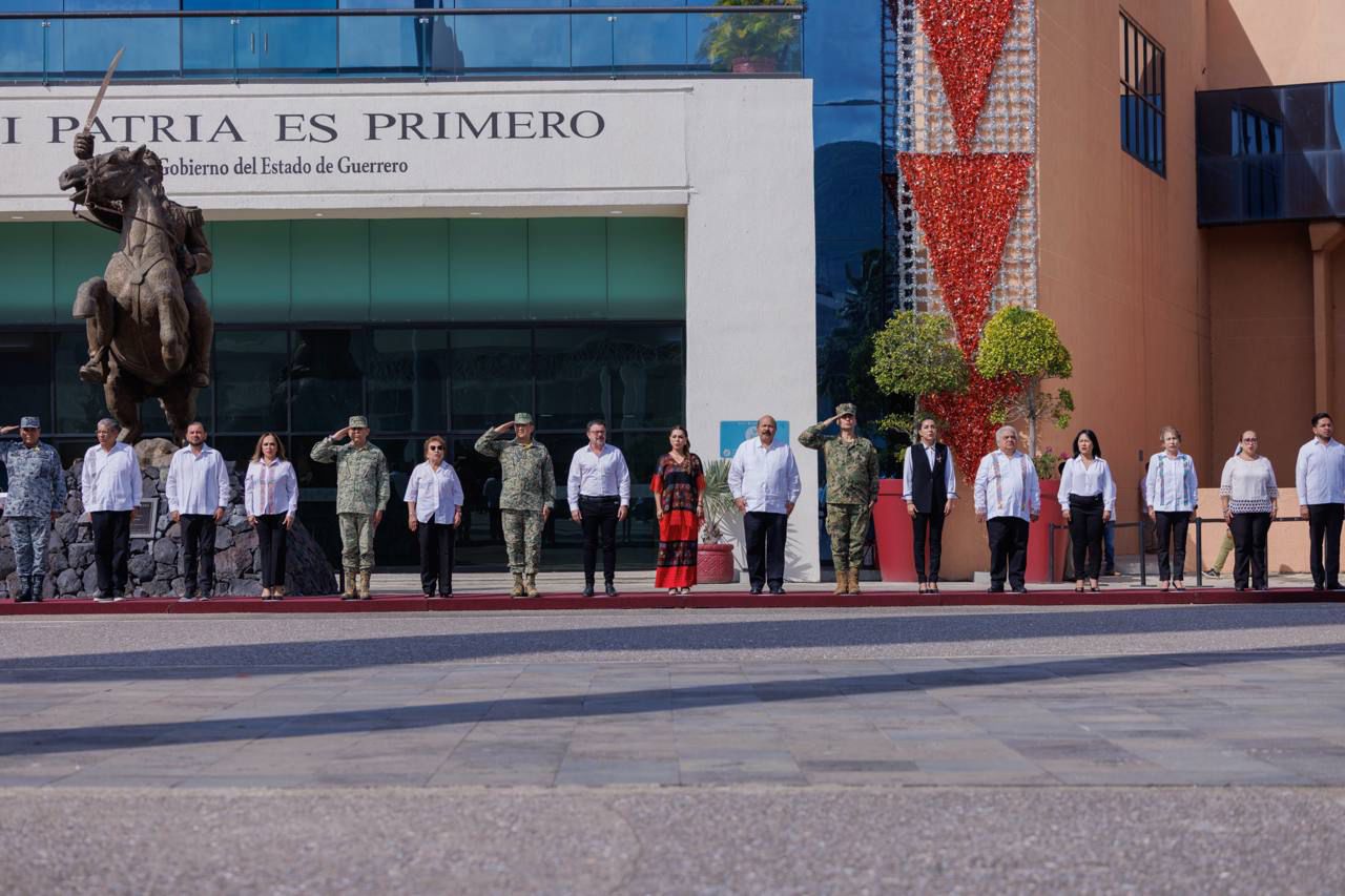 Al encabezar la ceremonia cívica de izamiento de Bandera Nacional en la Casa del Pueblo, correspondiente al mes de septiembre, la gobernadora Evelyn Salgado Pineda con fervor patrio llamó a la unidad y a seguir trabajando con la misma convicción, fuerza y pasión de estos cuatro años de gobierno, para sostener con firmeza los valores de igualdad y justicia, por la paz y bienestar de los guerrerenses.