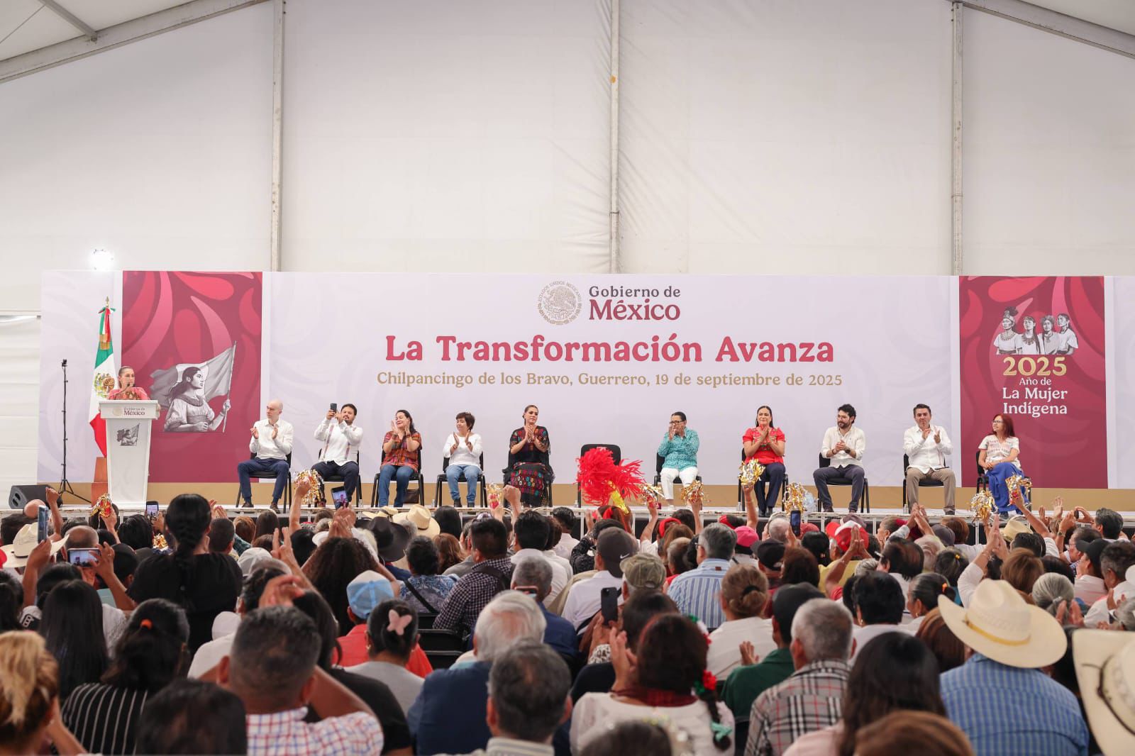 visita a Guerrero, donde resaltó que en el estado la transformación avanza con fuerza alcanzando a casi 1.5 millones de personas beneficiadas con los programas de Bienestar, que representa más de 35 mil millones de pesos de inversión histórica.