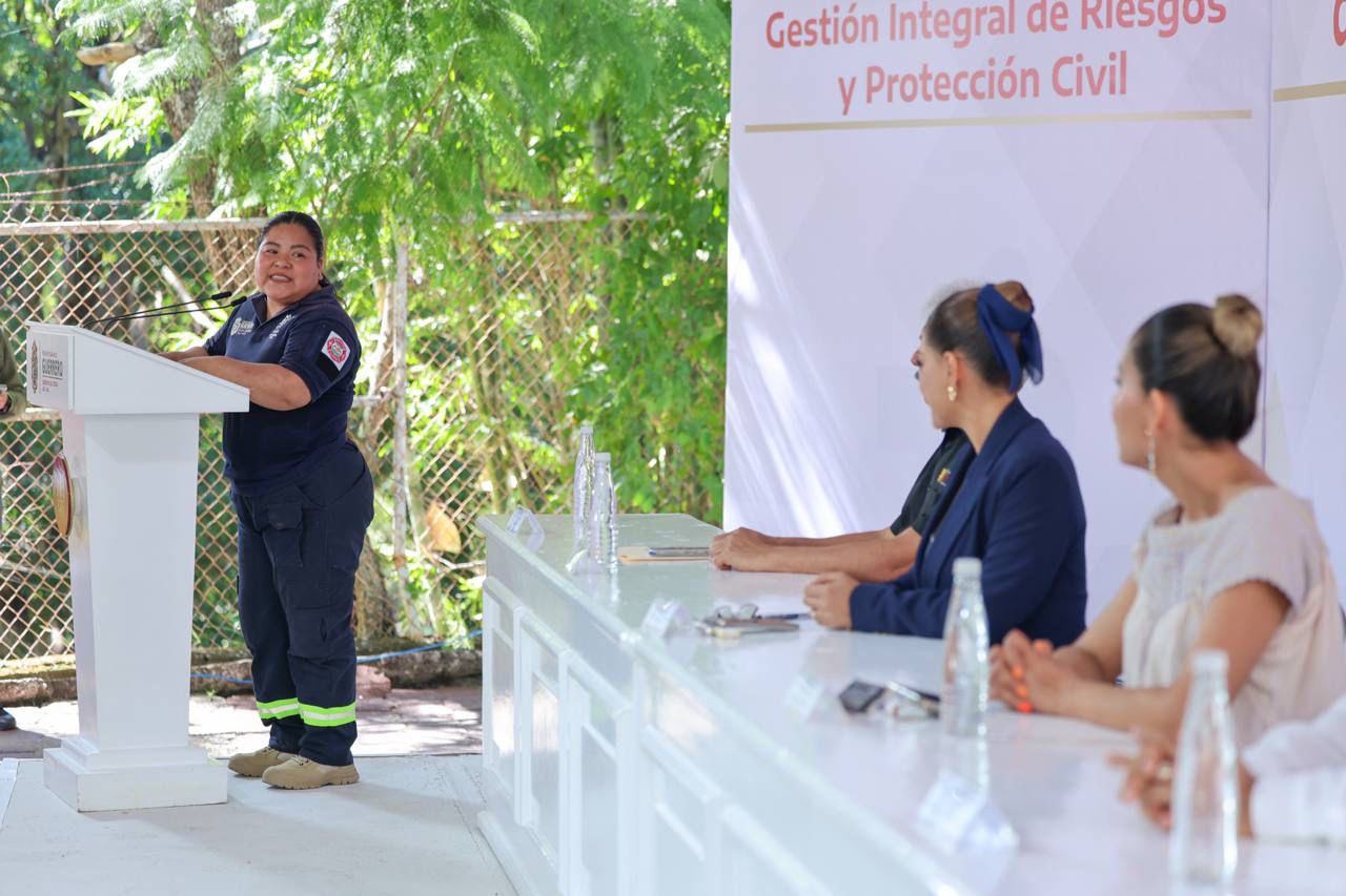 A nombre del personal operativo, la brigadista Blanca Alicia Hernández Santos agradeció el respaldo de la gobernadora por su visión humanista y solidaria, que dignifica la labor de bomberos, brigadistas y rescatistas que diariamente enfrentan incendios, desastres naturales y situaciones de alto riesgo.