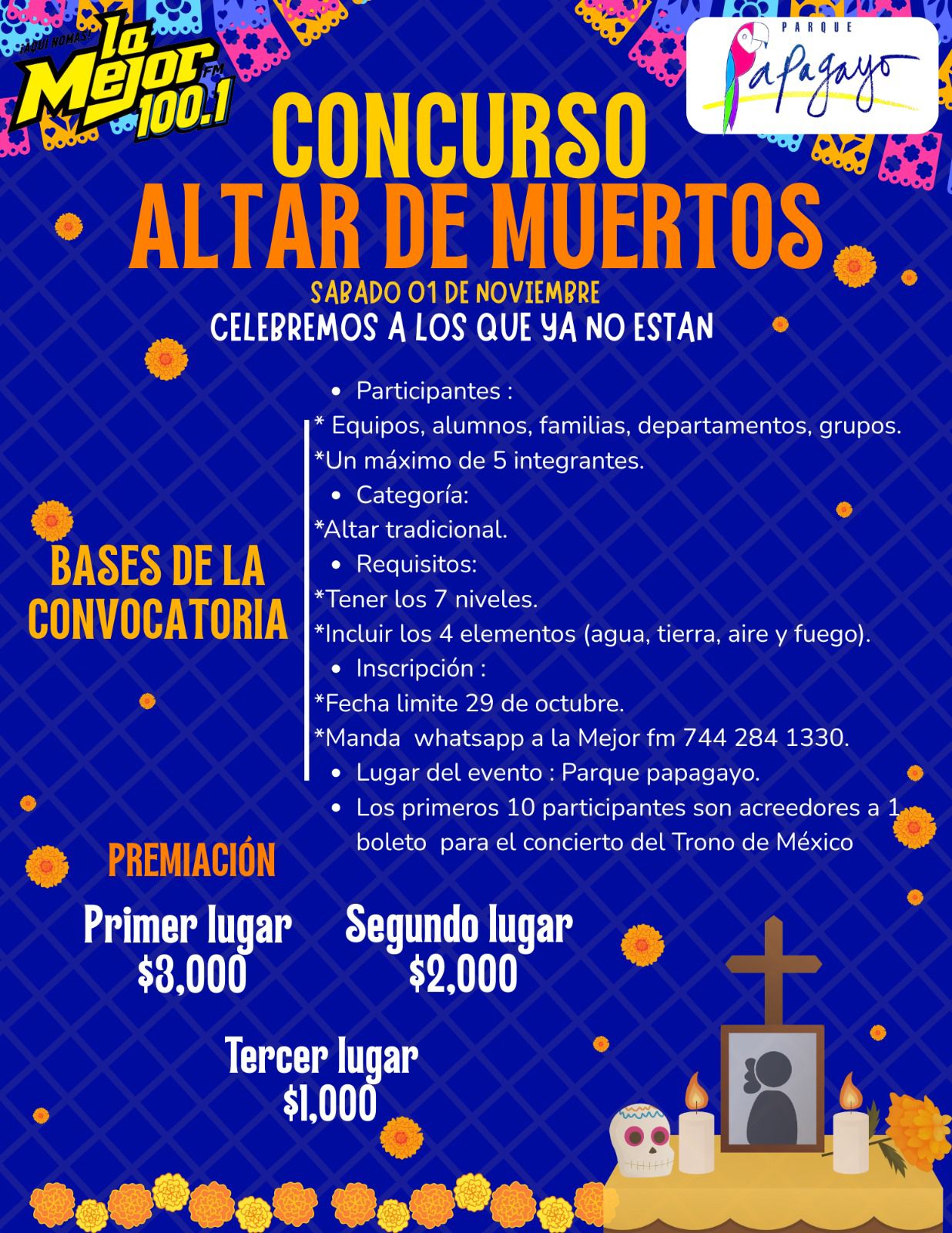 Abel Luvio explicó que, con relación a las ofrendas, estas deberán contener los cuatro elementos: tierra, agua, fuego, aire, y los siete niveles. Indicó que los primeros 10 participantes en inscribirse se ganarán un boleto para el concierto del Trono de México. En este caso la inscripción es vía celular al 7442841330.
