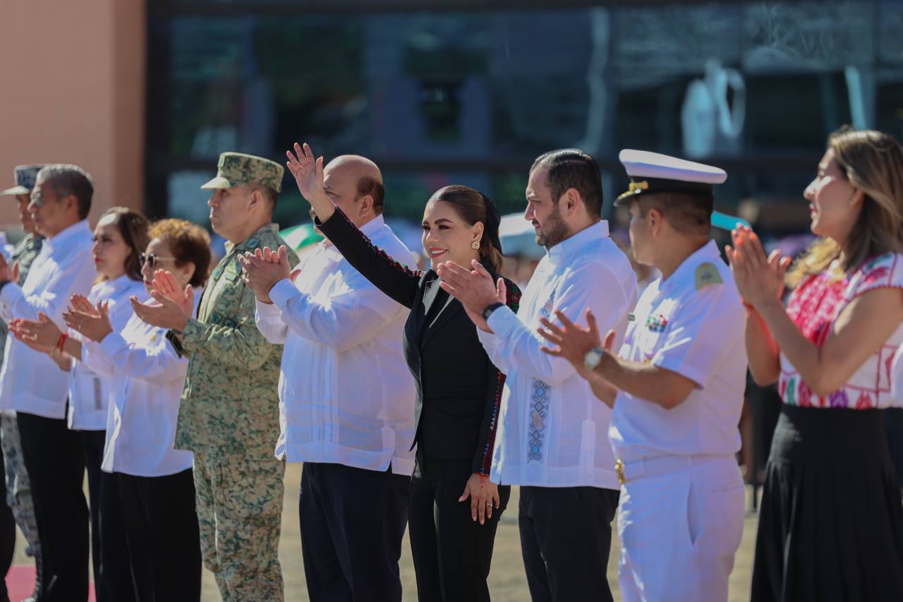 Al encabezar la ceremonia cívica de Izamiento de Bandera correspondiente al mes de noviembre, la gobernadora Evelyn Salgado Pineda hizo un llamado a las y los servidores públicos a continuar sirviendo con orgullo, honestidad y compromiso, destacando que la verdadera defensa de la patria se libra cada día con trabajo, justicia y esperanza.