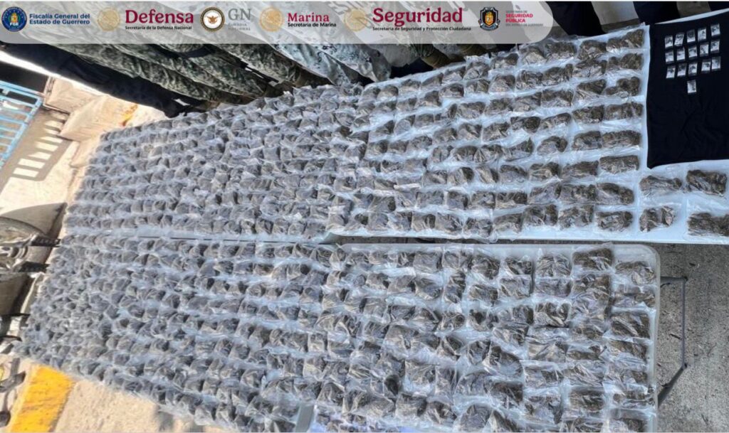 Como parte de las acciones coordinadas para inhibir actividades delictivas en el estado, personal de la Secretaría de la Defensa Nacional (Defensa), Guardia Nacional (GN), Fiscalía General del Estado (FGEGuerrero), Policía Estatal (SSPGro), Secretaría de Marina (Semar) y Secretaría de Seguridad y Protección Ciudadana (SSyPC), realizaron el aseguramiento de diversas dosis de droga en el municipio de Coyuca de Benítez.