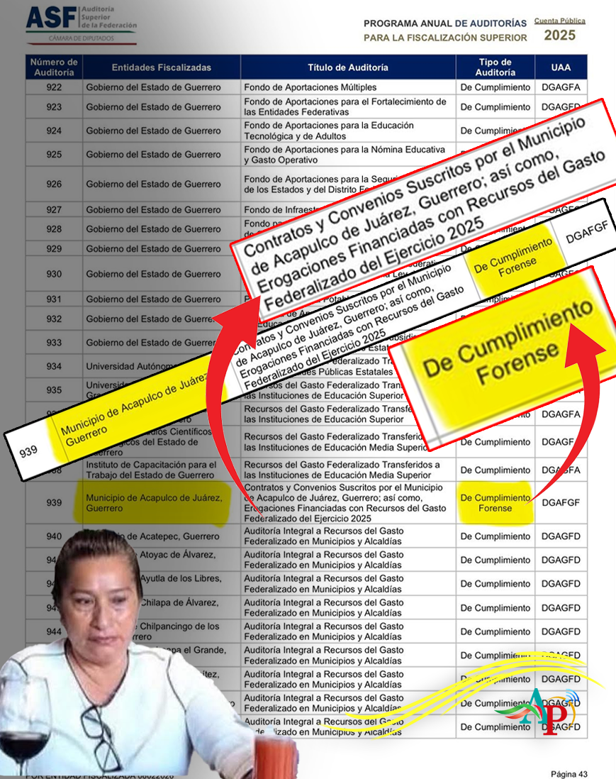 Destáquese que esta vez no es la Auditoría Superior de Guerrero (ASE Gro) la que ha programado la mencionada «auditoría de cumplimiento forense», sino directamente la Auditoría Superior de la Federación (ASF).