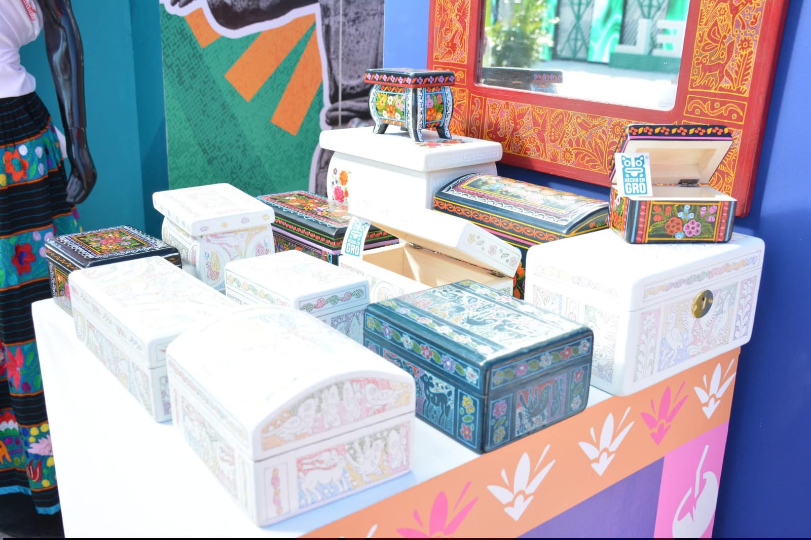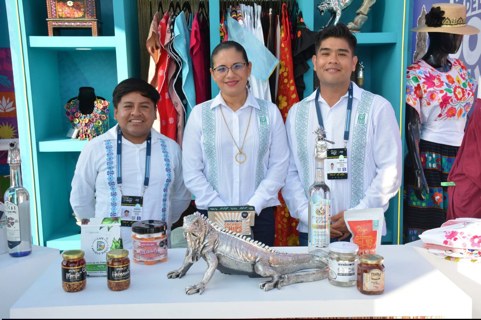 El recorrido sensorial se completa con los aromas y sabores que distinguen al estado: mezcales certificados de distintas regiones, café de altura, miel, mango y coco, productos que llevan el distintivo HECHO en GRO y que conquistan el paladar de visitantes nacionales y extranjeros.