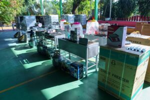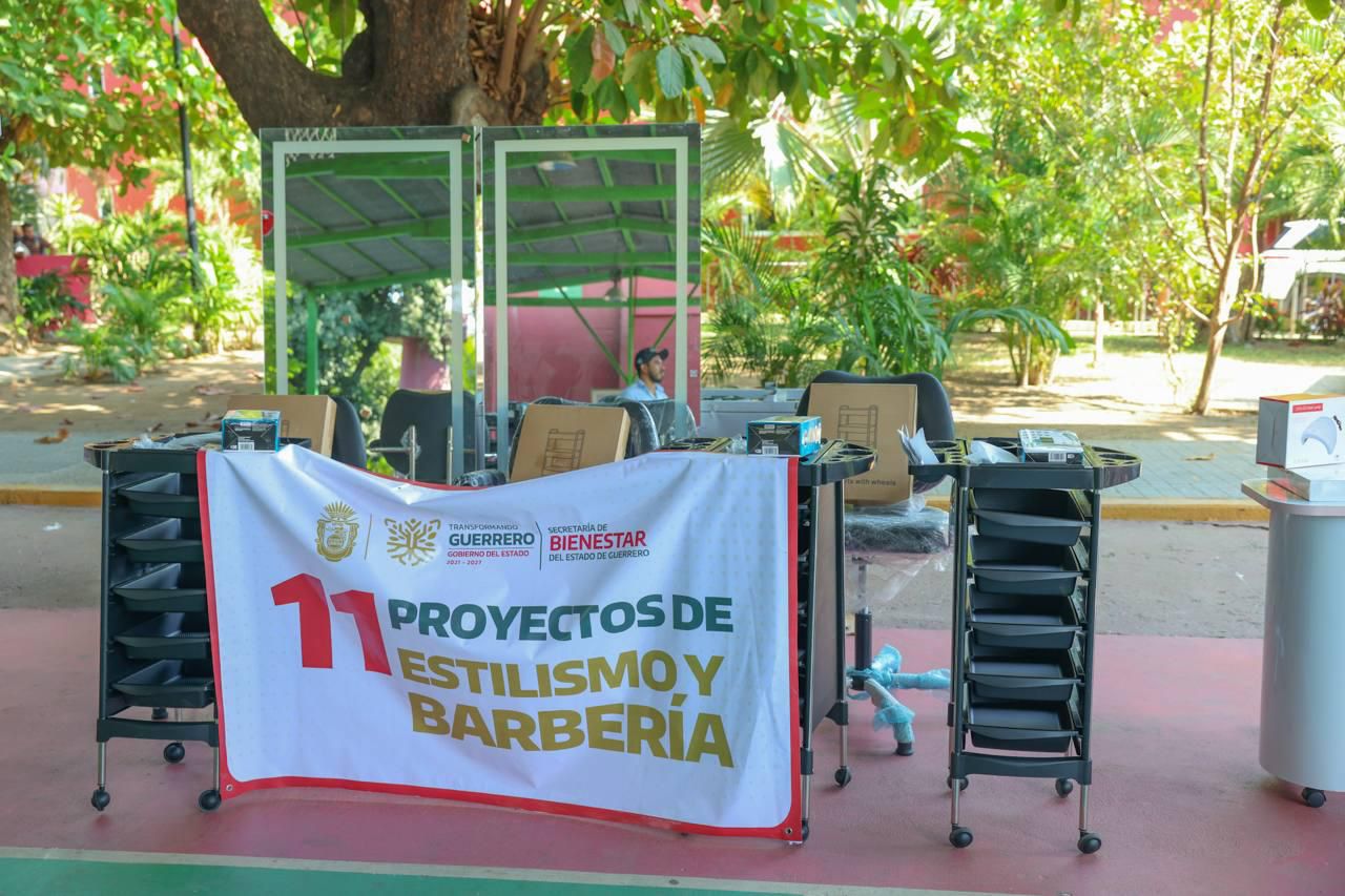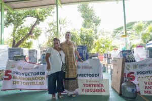 Enseguida, la gobernadora hizo entrega simbólica de los apoyos, entre los que destacan entrega de equipamiento para proyectos de Salón de Uñas, Barbería, Venta de Antojitos, Tortería, Raspados, Aguas Frescas, Tamales y Atoles, Elotes y Esquites, Panadería, Carnicería, Pollería, Tortillas Mano, Hot dogs y Hamburguesas, Carpintería y Reparación de celulares.
