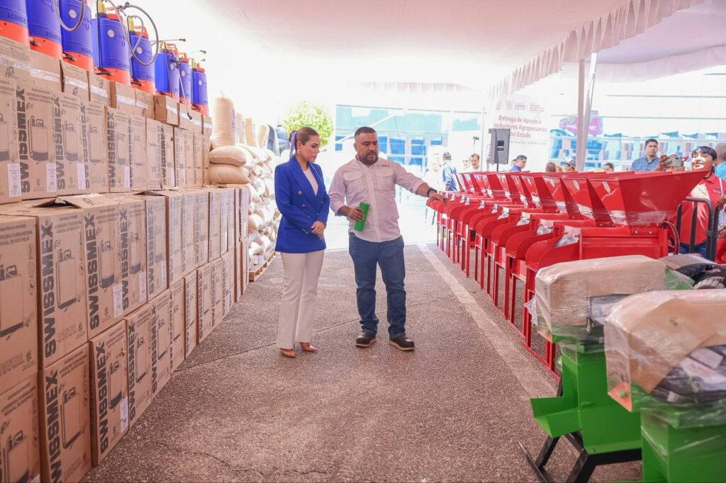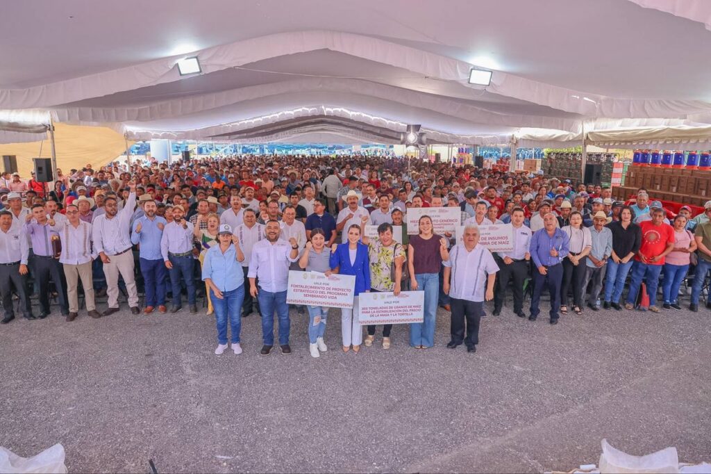 La gobernadora entregó equipamiento agrícola por más de 25 millones de pesos, además de insumos de maíz por más de 10.5 millones de pesos; garantías para el fortalecimiento de proyectos por más de 23 millones de pesos y equipamiento ganadero con una inversión de 8.2 millones de pesos.