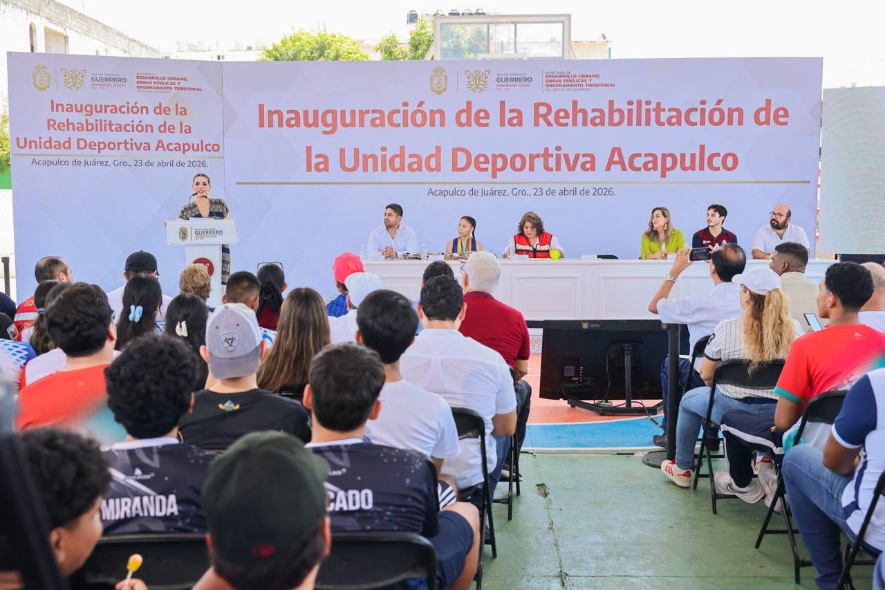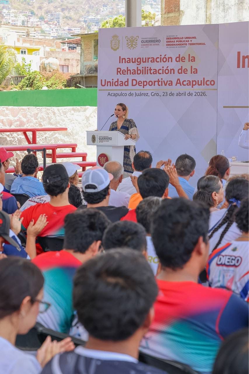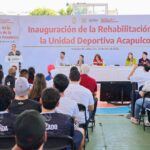 Acompañada por deportistas de diversas disciplinas y autoridades, la mandataria estatal dijo que con esta rehabilitación, la UDA se convierte en un espacio digno, seguro y equipado para todos los jóvenes, niñas, niños y para todos los acapulqueños. Detalló que como parte de esta acción integral, se trabajó en áreas como las canchas de futbol y beisbol, el techado de las canchas de basquetbol, la pista de atletismo, se colocó un nuevo sistema de bombeo para las albercas, se pintó toda la unidad y se rehabilitó la red eléctrica.