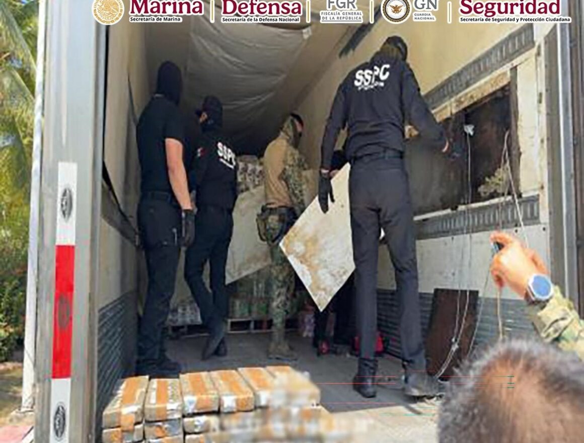 El aseguramiento se realizó durante un operativo en la carretera Playa Azul – Manzanillo, donde se estableció un puesto de control y los efectivos tuvieron contacto con un tractocamión acoplado a una caja refrigerada, al cual se le realizó una inspección de seguridad con apoyo de un ejemplar canino de la Defensa.